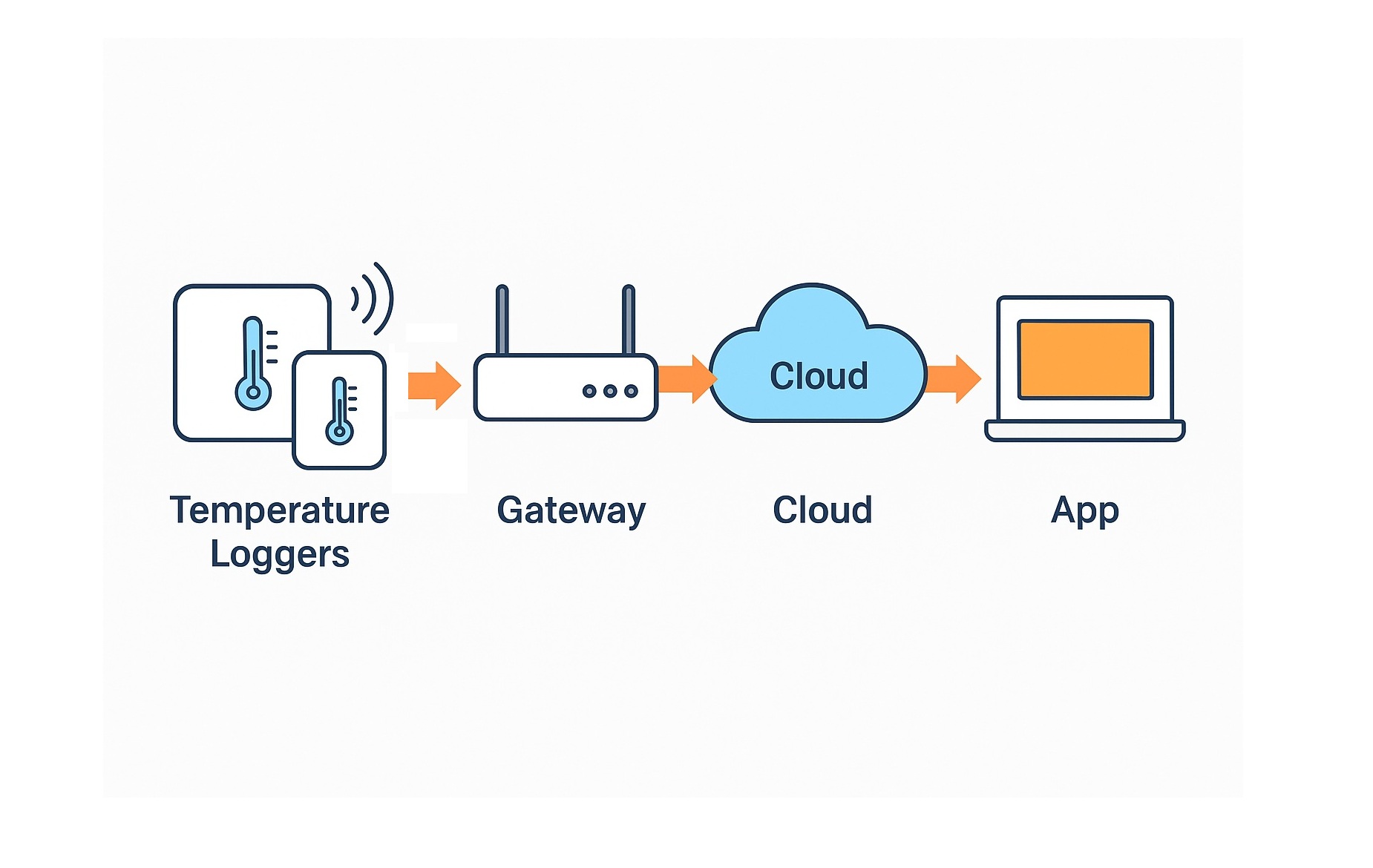 מערכת אלחוטית מלאה לניטור טמפרטורה ולחות במחסני קירור, סופרמרקטים, קצביות ולוגיסטיקת מזון – התראות מידיות, דוחות ענן, פתרון חכם להפחתת הפסדים.